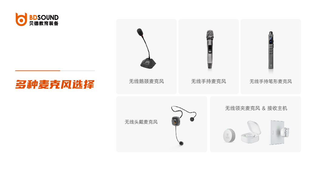 ● 多種形態(tài)供選擇:四種話筒形態(tài)圖標(鵝頸/手持/耳戴/),任意組合,自由定義;