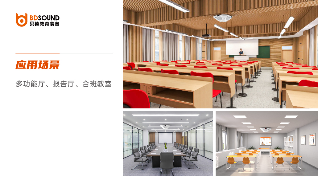 貝德多功能等聲壓一拖五音箱 BD-H0361F,是一款等聲壓健康擴聲系統音箱,聲能35°向下輻射,聚焦在人體,增加漫反射+強吸聲,無需聲場設計,座位布局中心向四周等聲壓均勻覆蓋,系統自適應算法,傳聲增益最大化,一體式設計,高度集成化,插電即用,開機即用,免調試,“0”布線,秒級部署,無線互聯,高效會議零負擔,標配話筒類型豐富,無線頭戴、無線領夾、無線鵝頸、無線手持。